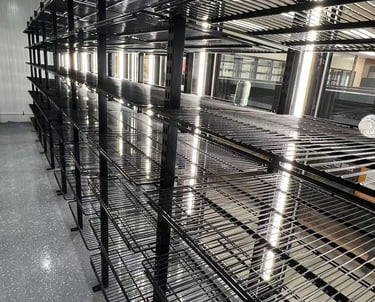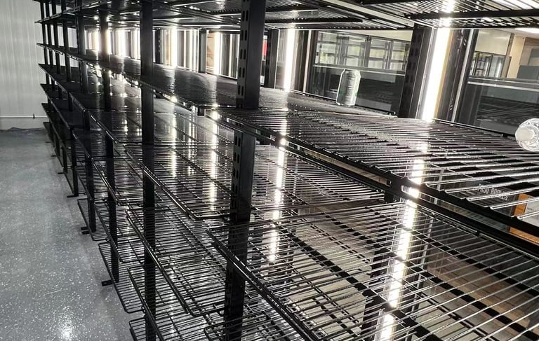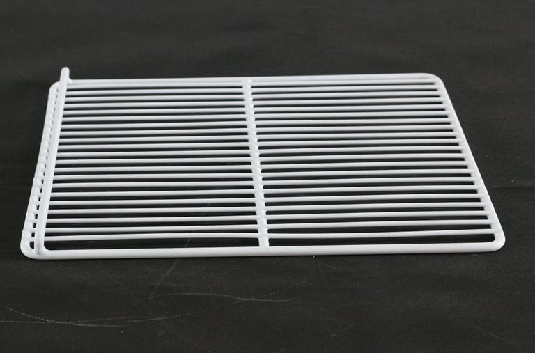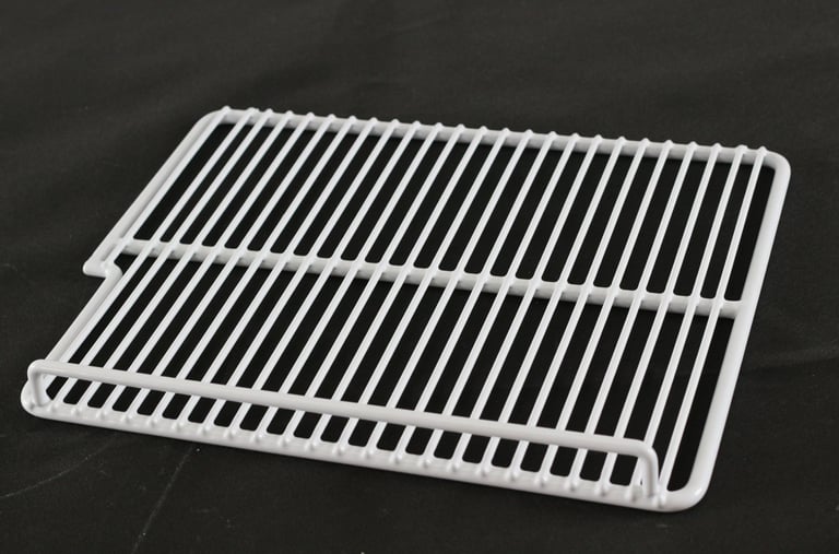 Durable PE-coated wire shelves for commercial refrigerators and freezers.